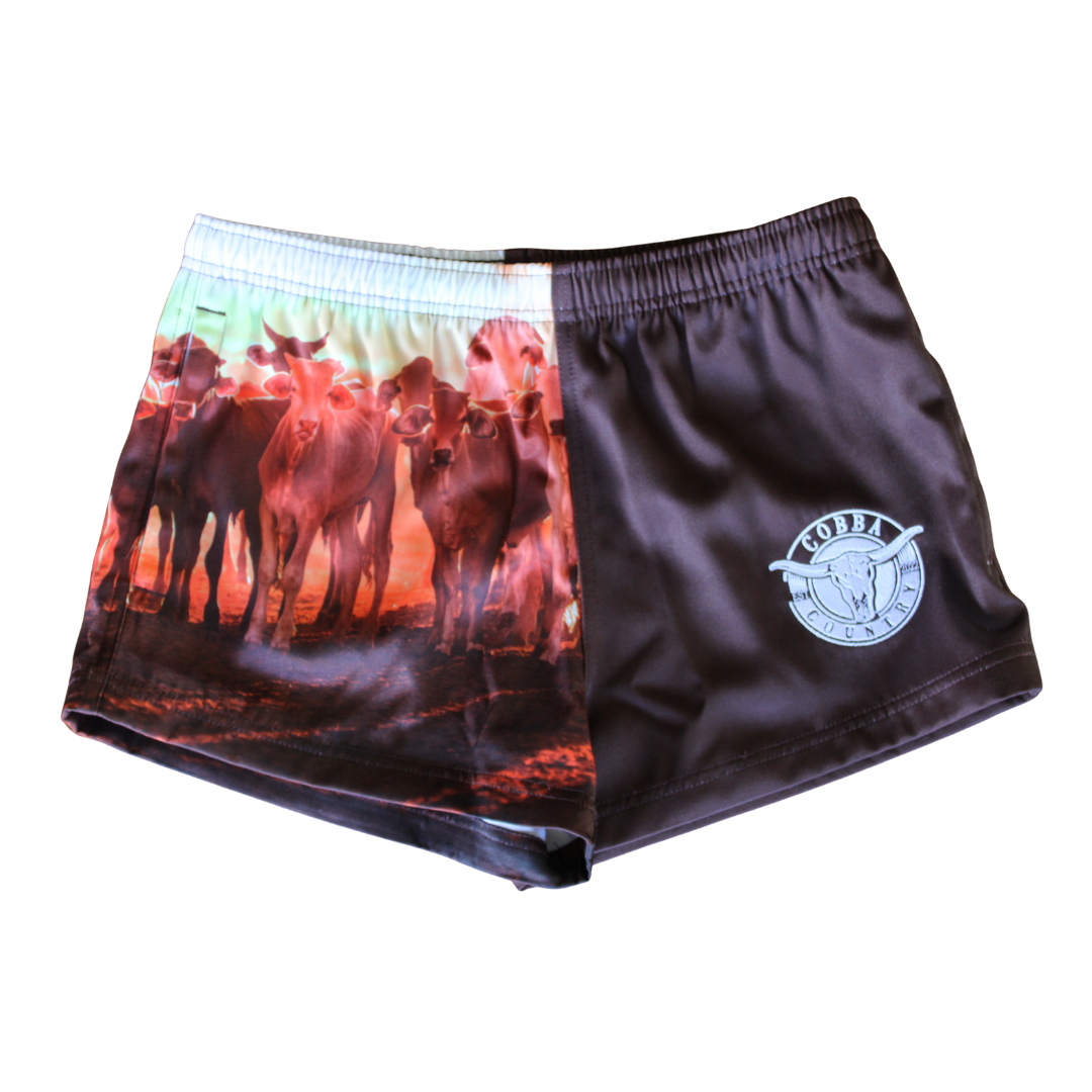 Footy Shorts (with Zip Pockets) - Brown & Cattle Country