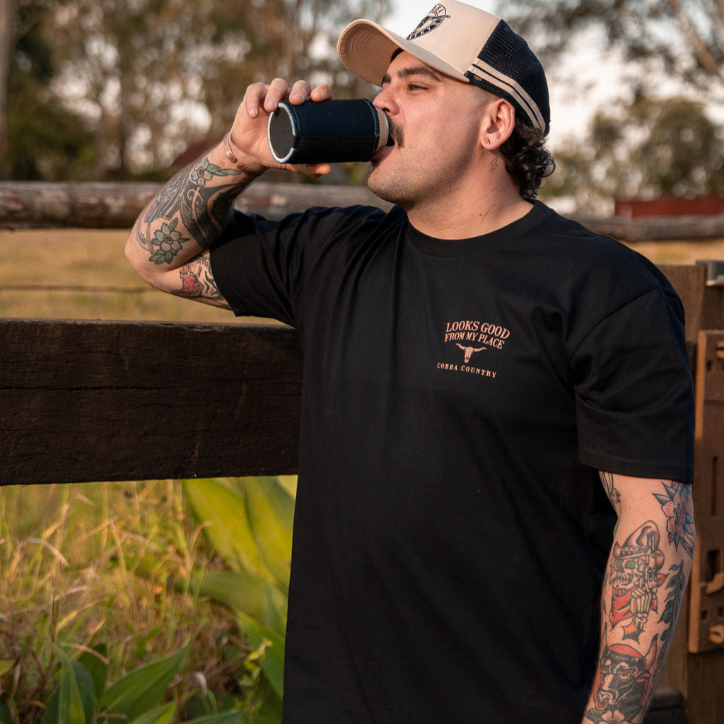 For all the times you wish you didn’t take a closer look. The Cobba Country Men's Look Good From My Place Tee is a regular fit, crew neck shirt made from 100% carded cotton.Pre-shrunk for a consistent fit.